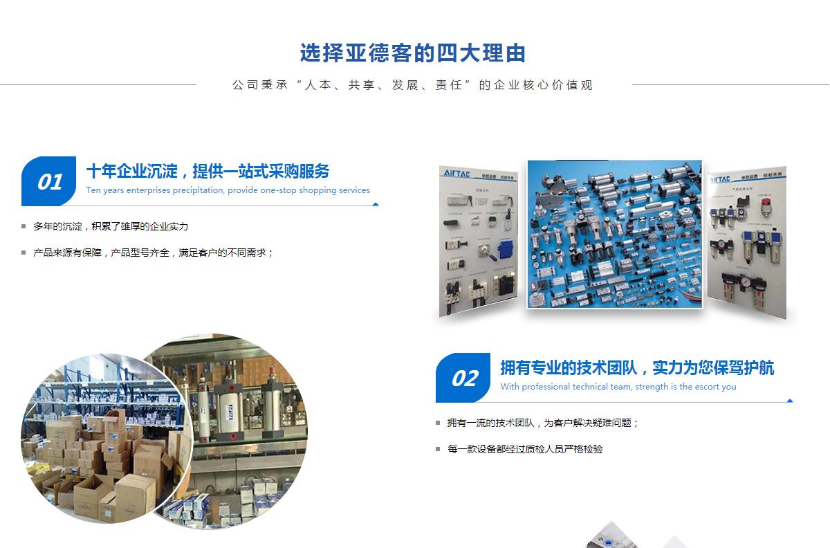 天津中工科進(jìn)智能裝備有限公司自成立以來(lái),依托優(yōu)越的地理優(yōu)勢(shì),立足三北,輻射全國(guó),形成了穩(wěn)定的銷(xiāo)售網(wǎng)絡(luò),公司專(zhuān)業(yè)從事臺(tái)灣亞德客AIRTAC品牌氣動(dòng)元件,北方地區(qū)的銷(xiāo)售及售后服務(wù)等。產(chǎn)品包含:亞德客AIRTAC氣動(dòng)元件,亞德客AIRTAC氣缸,亞德客AIRTAC電磁閥,亞德客AIRTAC氣控閥,亞德客AIRTAC氣動(dòng)旋轉(zhuǎn)夾爪,亞德客AIRTAC過(guò)濾器,亞德客AIRTAC夾緊氣缸,亞德客AIRTAC氣動(dòng)機(jī)械夾爪,亞德客AIRTAC真空吸盤(pán),亞德客AIRTAC接頭氣管輔助元件等。公司團(tuán)隊(duì)立足于氣動(dòng)領(lǐng)域內(nèi)的技術(shù)咨詢(xún)、技術(shù)服務(wù),設(shè)有專(zhuān)門(mén)的銷(xiāo)售服務(wù)部,擁有完善的銷(xiāo)售服務(wù)體系,可在售前、售中和售后的各個(gè)環(huán)節(jié)為用戶(hù)提供全面服務(wù),為您解決氣動(dòng)方面各項(xiàng)疑難問(wèn)題。