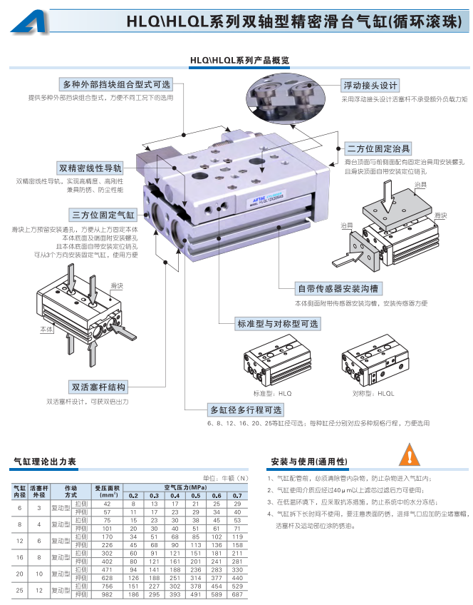 HLQ/HLQL系列雙軸型精密滑臺氣缸
